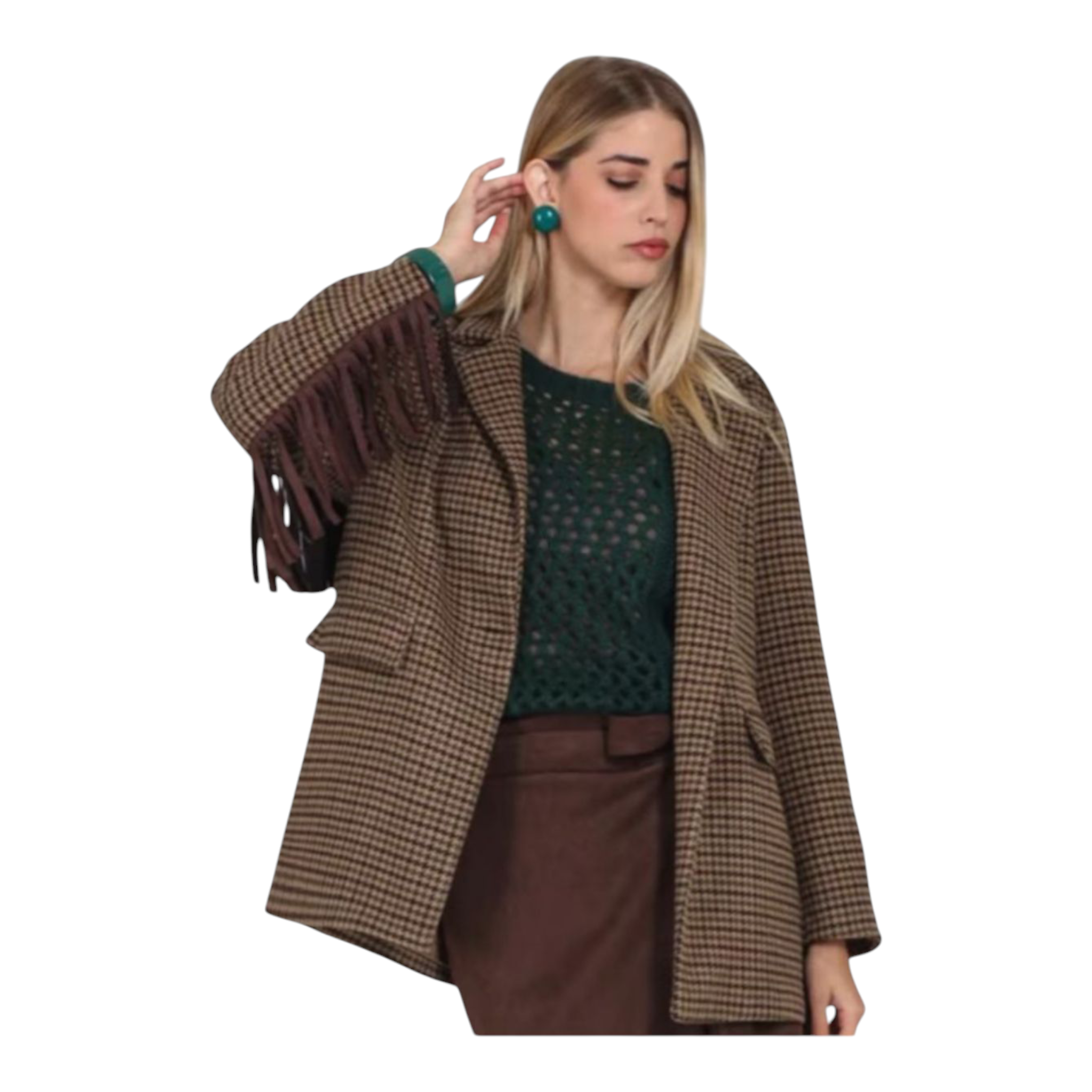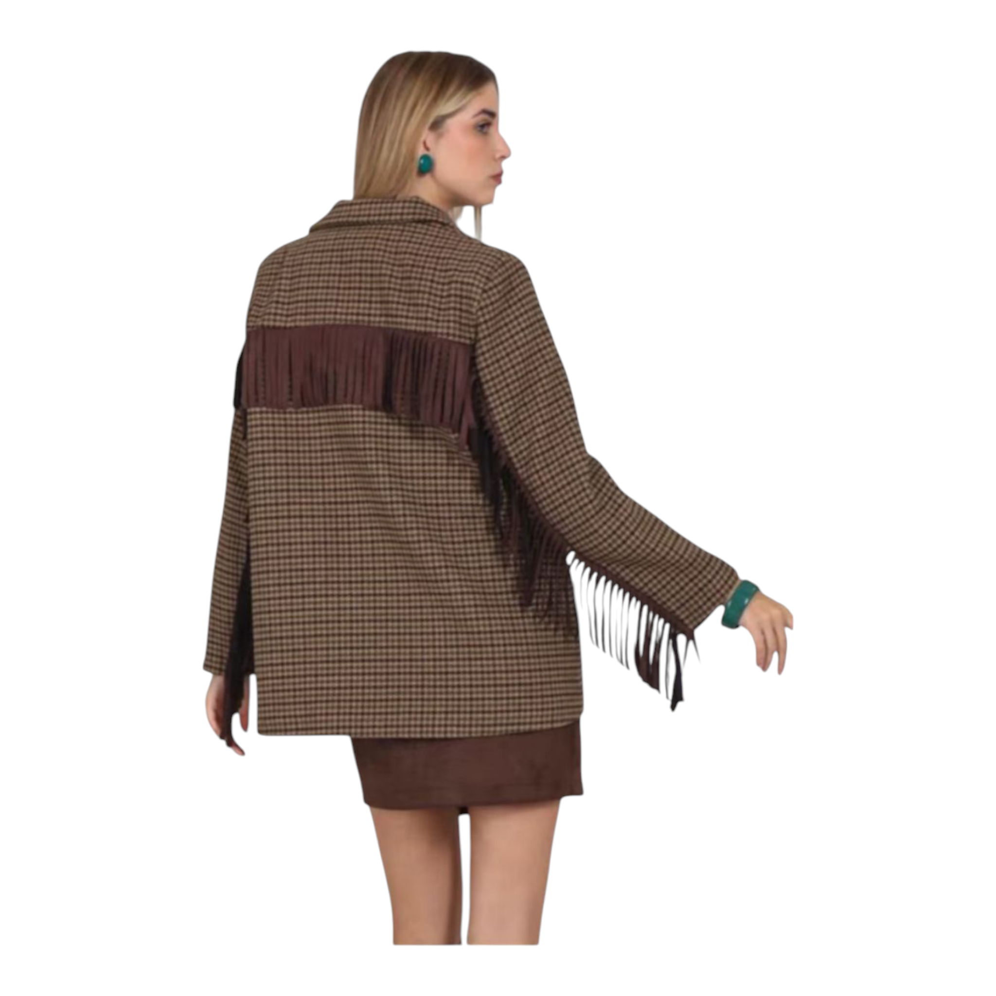 Cappotto corto, vestibilità over con frange sul retro e sulle maniche