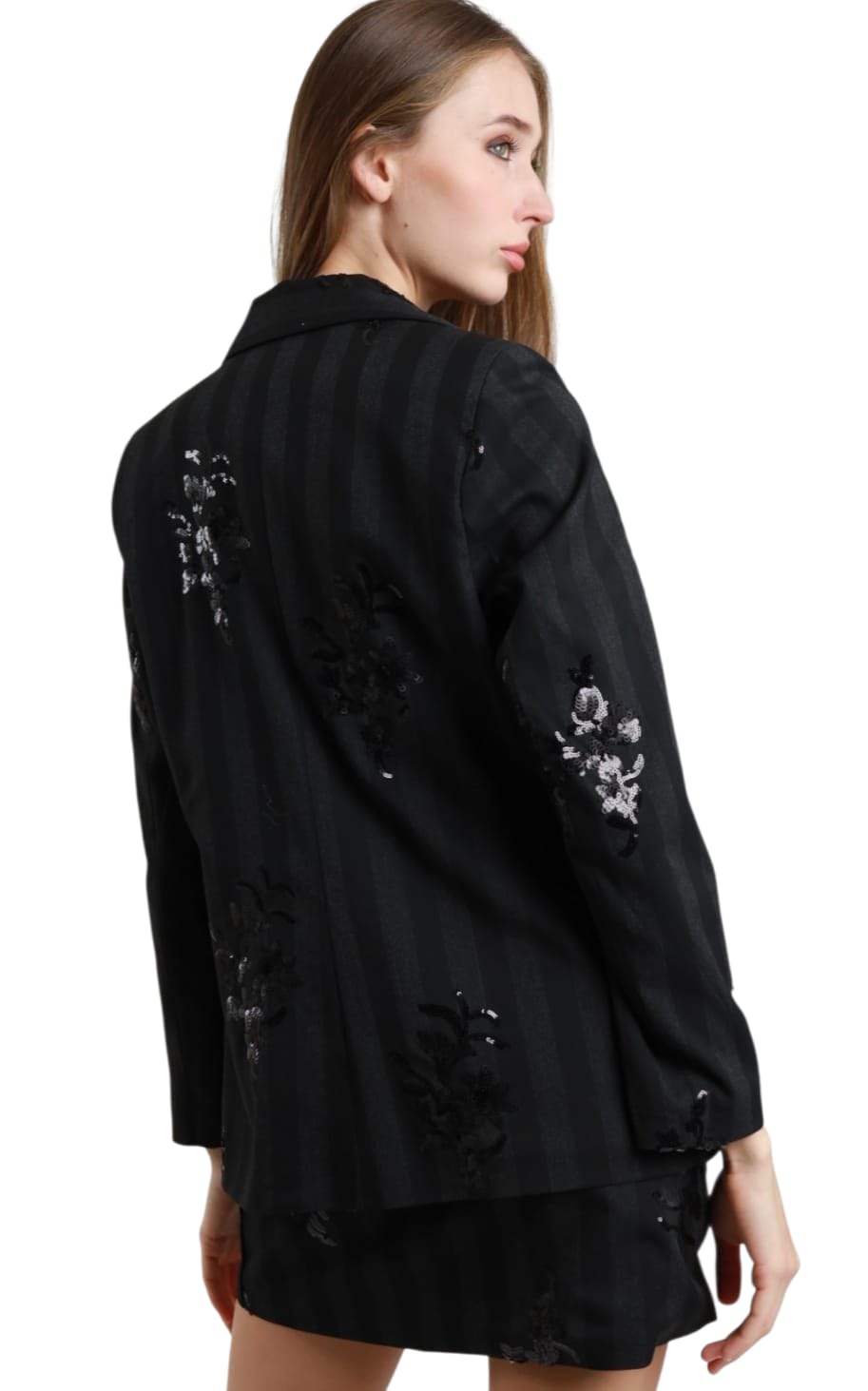 Giacca Gessata con Ricamo Fiori in Paillettes. 34%pl 34%vi 2%ea