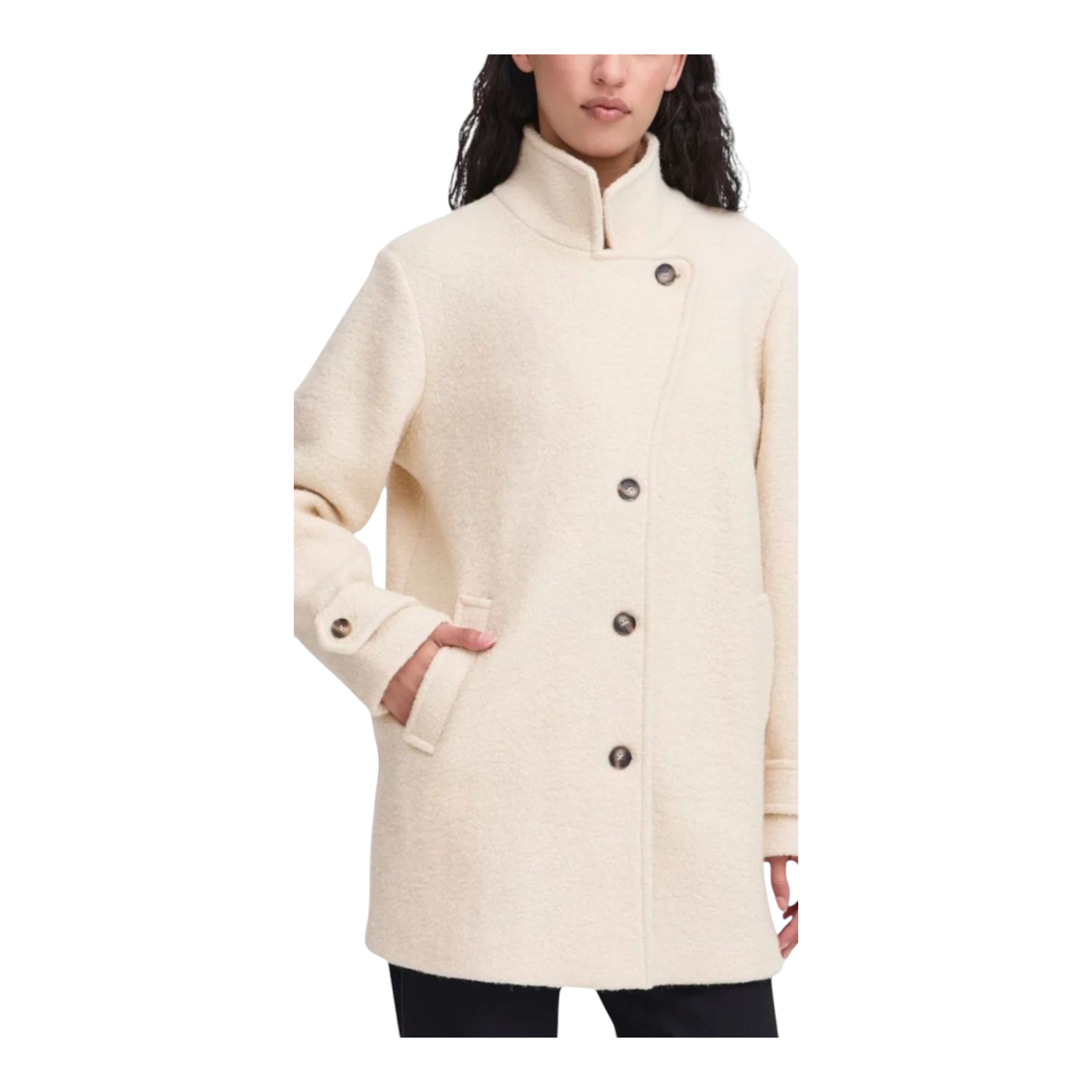Cappotto con bottoni sulla chiusura e sulle maniche.