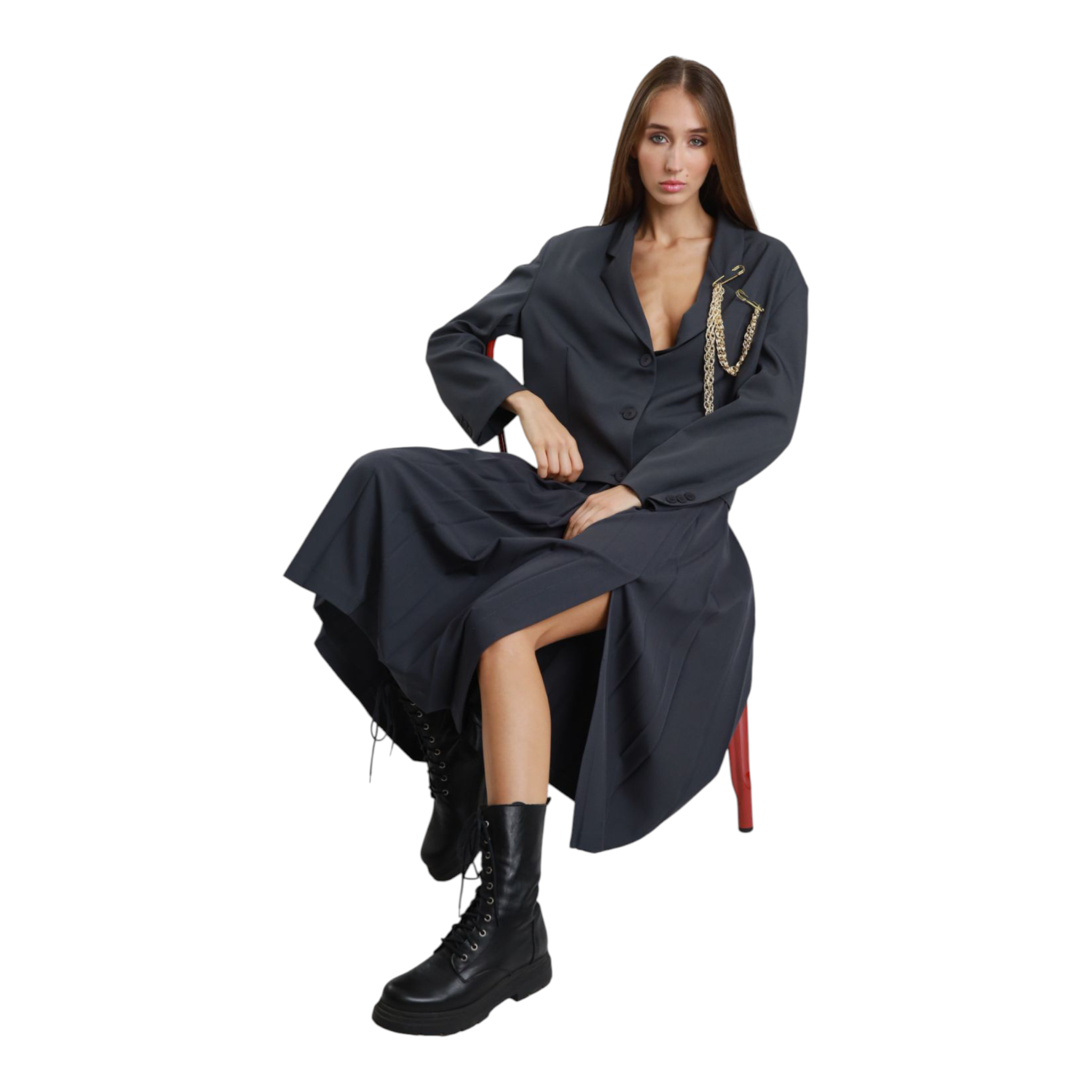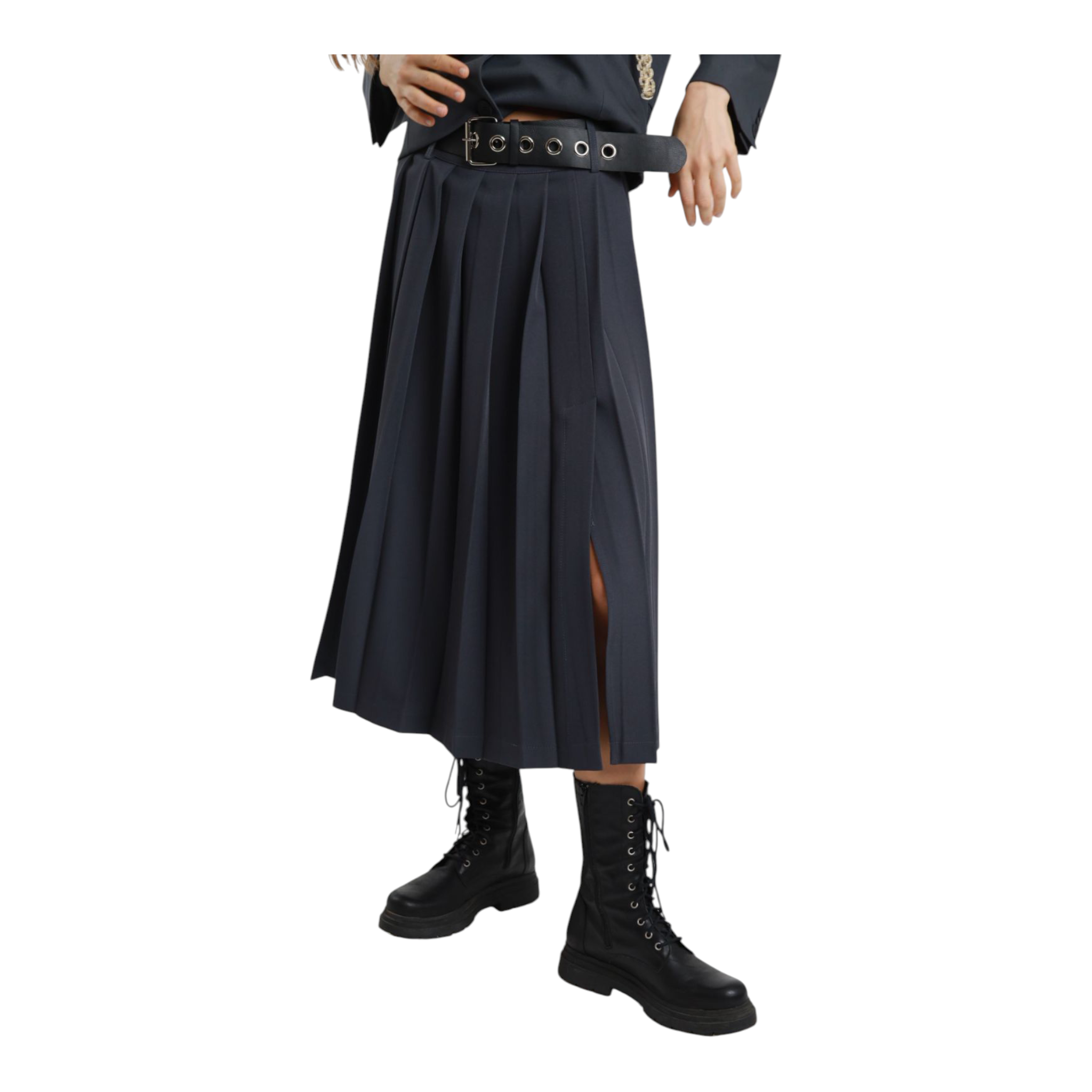 Gonnellina con pieghe e spacco laterale.